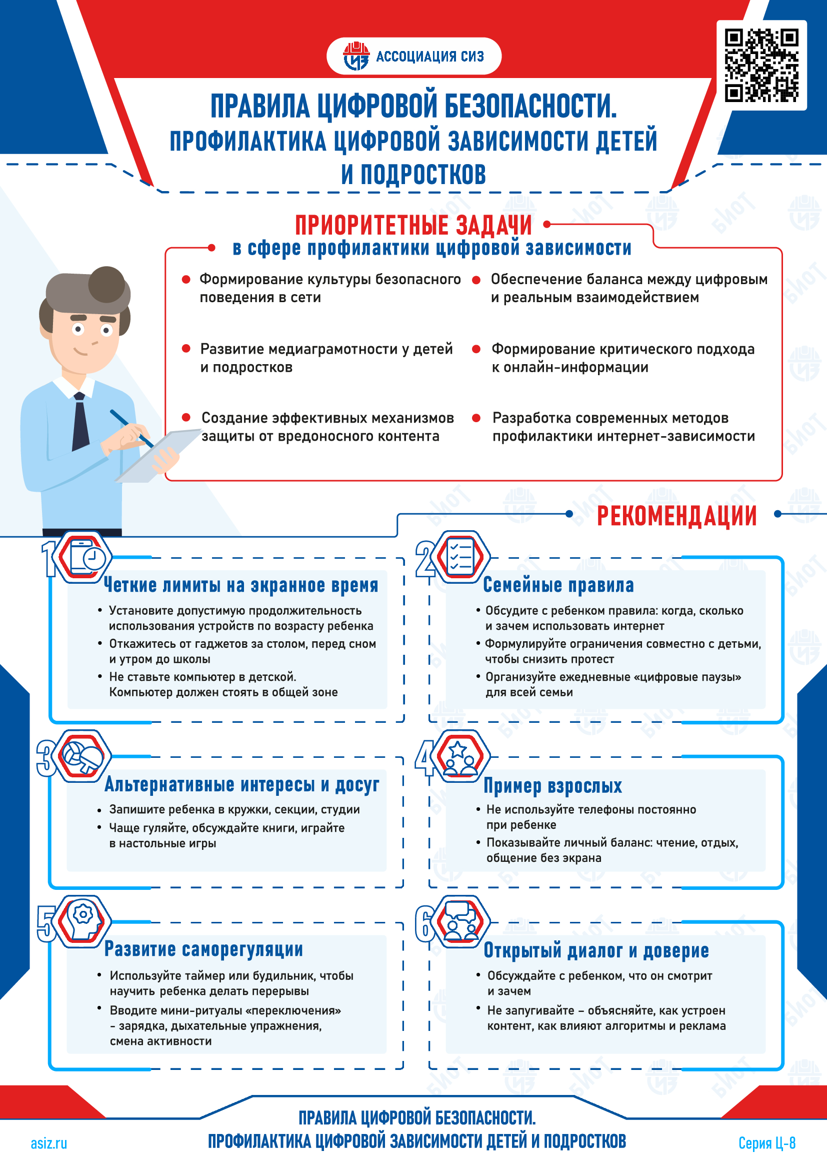 Ассоциация разработчиков, изготовителей и поставщиков средств индивидуальной защиты (Ассоциация «СИЗ») в связи с началом нового учебного года, а значит еще одного года активной цифровой жизни миллионов детей и подростков, подготовила серию инфографик по цифровой безопасности.