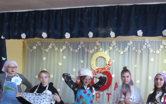 Праздник проходил на базе Центра профессиональной подготовки. Открыл вечер директор Центра Виктор Петрович Вишняков. Он поздравил всех женщин, присутствующих в зале, вручил им грамоты и цветы. А учащийся Никита Вишняков подарил музыкальный подарок - песню. Затем ведущие вечера Лариса Плоскодняк и Ольга Шипова представили тематическую композицию о женщинах в литературе, искусстве и науке.
