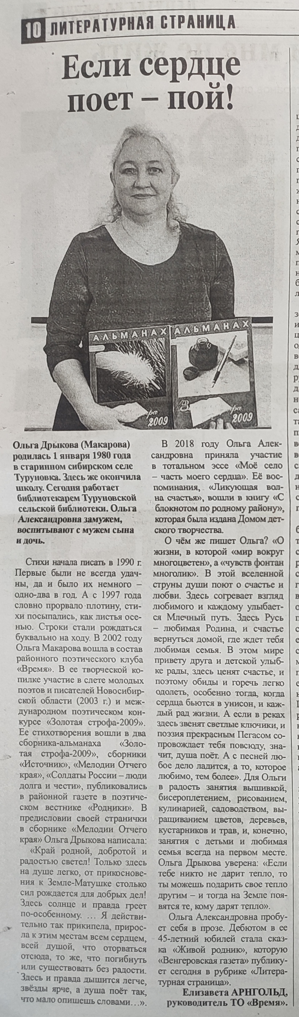 Арнгольд, Е. Если сердце поёт - пой! / Елизавета Арнгольд // Венгеровская газета .- 2025 .- 02 августа (№31), с. 10.